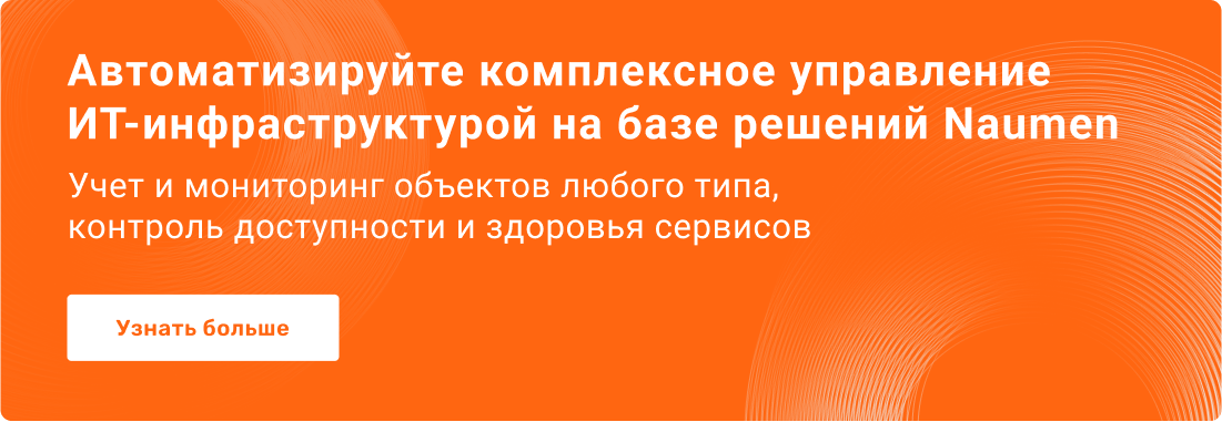 Закрыт и низовой слой — продуктом Naumen Network Manager. Он обеспечивает классический инфраструктурный мониторинг, используя мощные инструменты автоматического обнаружения объектов и конфигураций, поиск и визуализацию связей в инфраструктуре, агентский и безагентский мониторинг и другие технологические функции.