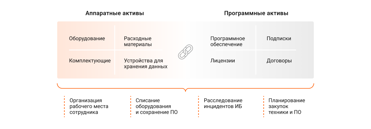 Взаимосвязь аппаратных и программных активов влияет на бесперебойное функционирование инфраструктуры и фактически поддерживает все