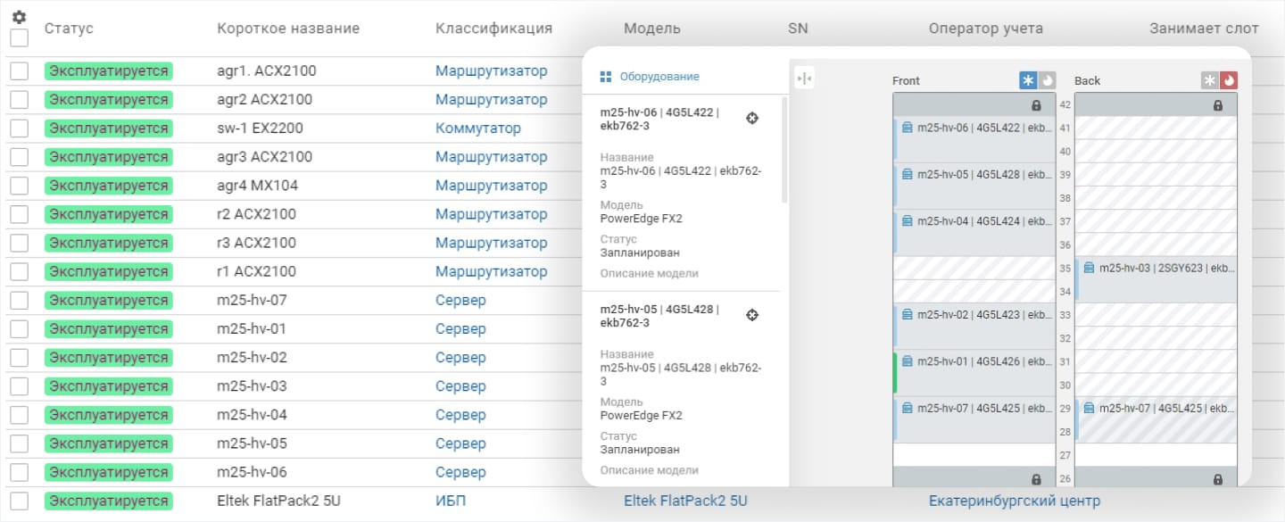 Детализация технического учета предполагает обогащение данных с помощью дополнительного сбора и сопоставления. Для сравнения: в CMDB для указания расположения КЕ достаточно указать номер кабинета. В системах Inventory расположение оборудования максимально уточняется, например, указывается стойка, ее сторона и конкретная полка.