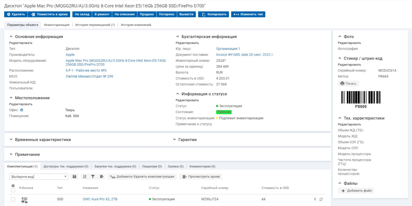 Сам ноутбук также является и КЕ, и одним из элементов автоматизированного рабочего места сотрудника (АРМ). Так, в АРМ может входить дополнительный монитор, мышь и коврик для нее, клавиатура, видеокамера.