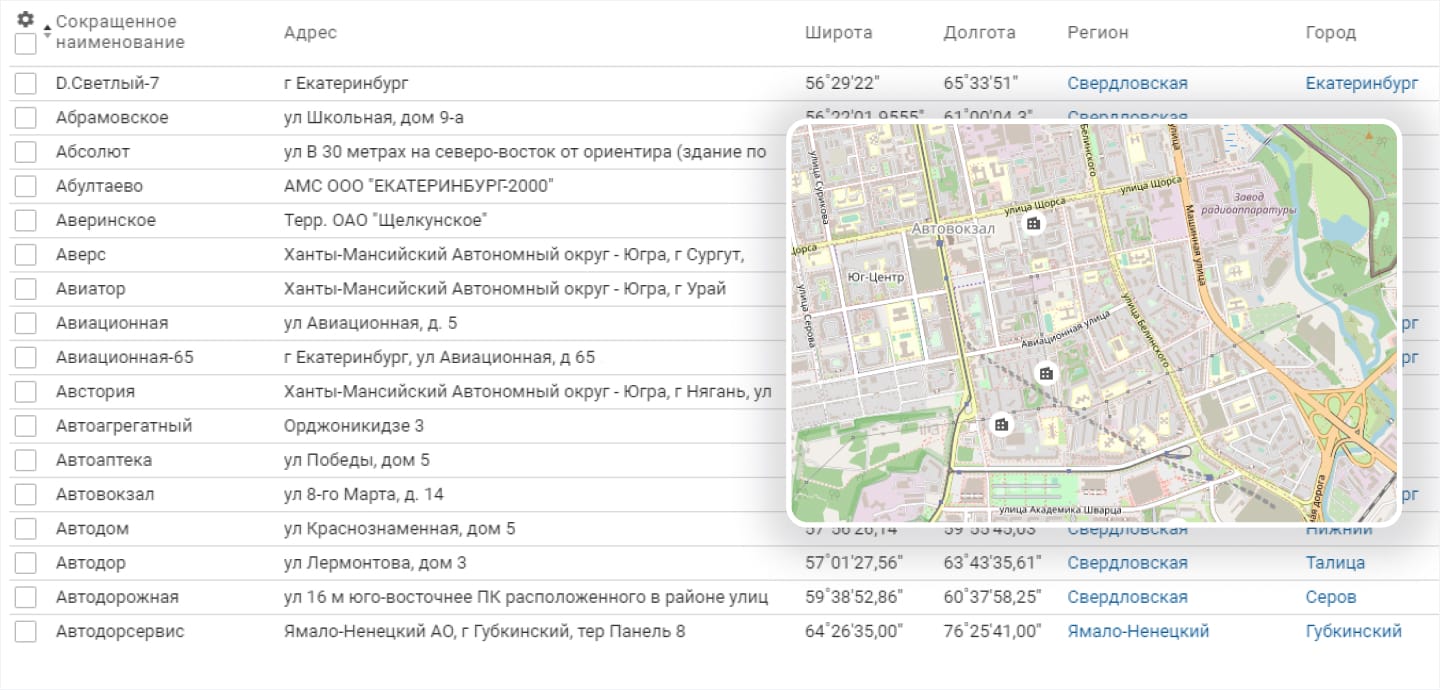 Карта объектов наглядно покажет данные о том, где находятся площадки и узлы связи