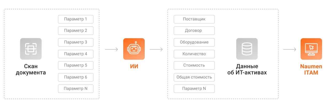 Одно из перспективных направлений применения ИИ — это возможность избавить сотрудников от необходимости вручную вносить в ITAM-систему информацию из многочисленных документов. Это трудоемкая работа, при которой нередко случаются ошибки и неточности.