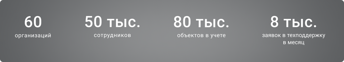 Процессы учета и сервисного обслуживания интегрировали между собой, что помогает специалистам техподдержки четко понимать топологию инфраструктуры, ее составляющие и взаимодействие. Это ускорило поиск причин и устранение инцидентов, оценку последствий, решение заявок от пользователей, а также планирование изменений и любых других действий с инфраструктурой.