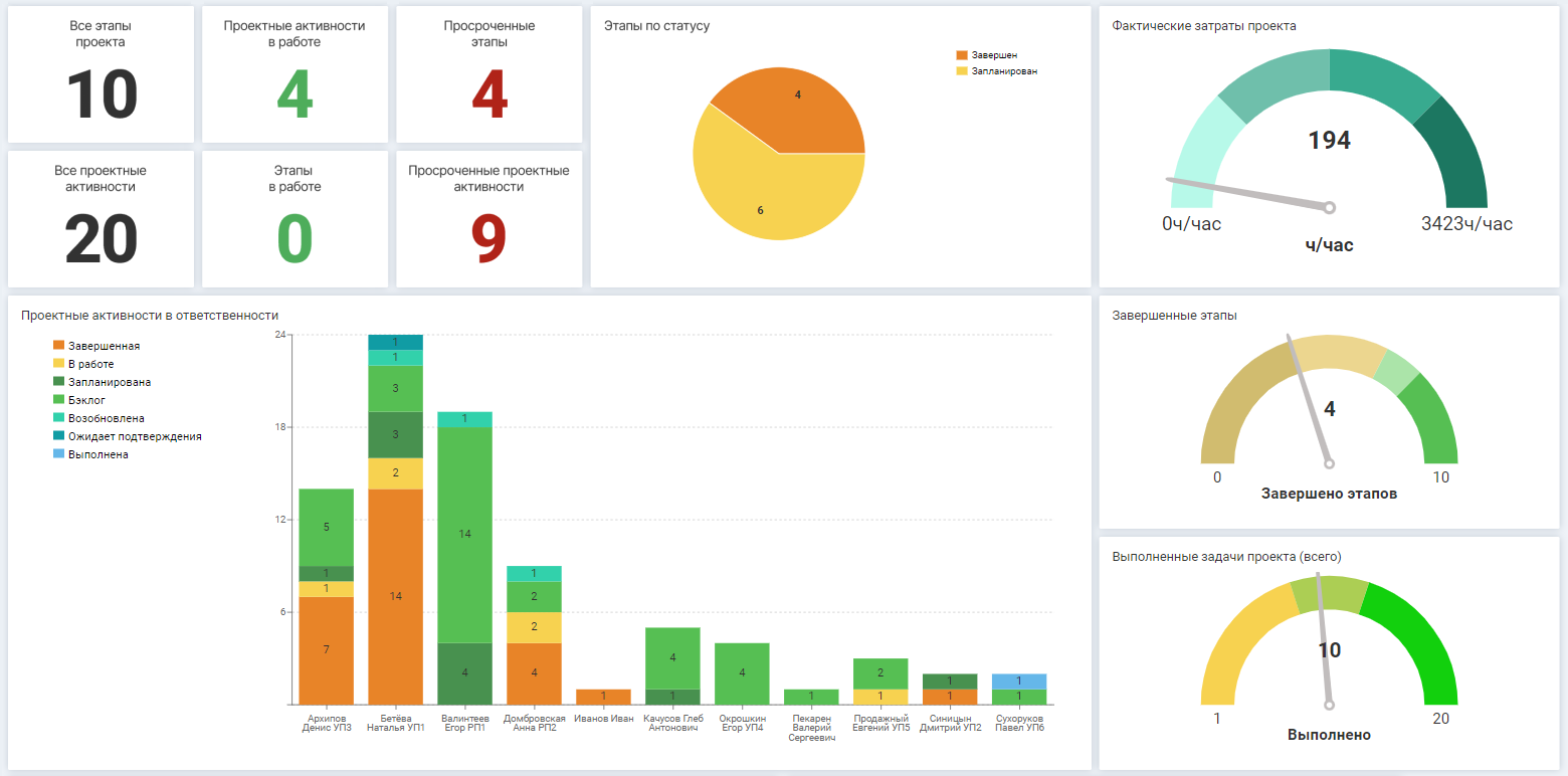 Экономит ресурсы. Виджеты обновляются автоматически, поэтому сотрудники не тратят время на подготовку отчетов вручную. Наглядное представление упрощает интерпретацию больших объемов информации. У руководителя или менеджера проекта всегда под рукой актуальные сведения, что позволяет быстрее отчитываться перед заказчиком либо вышестоящим руководством компании.