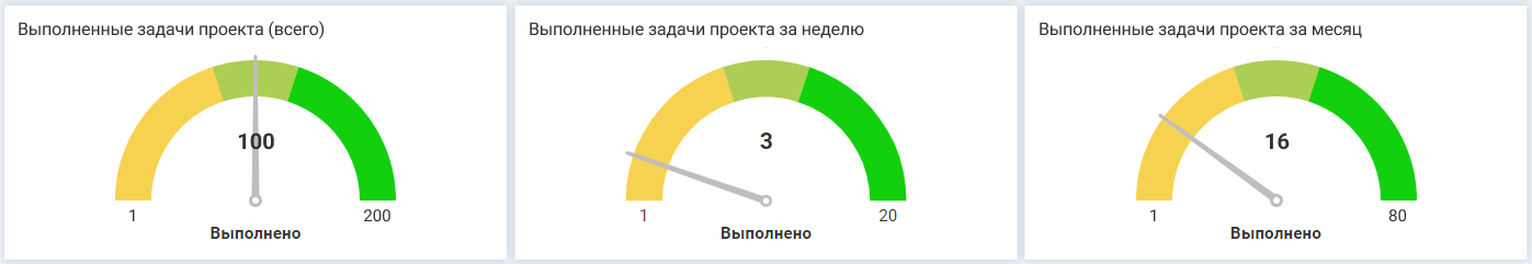 Прогресс выполненных задач проекта удобно анализировать с помощью спидометров