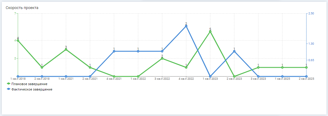 Скорость выполнения проекта показывает прогресс на основании динамики закрытия задач и позволяет увидеть, как работы продвигаются по плану.