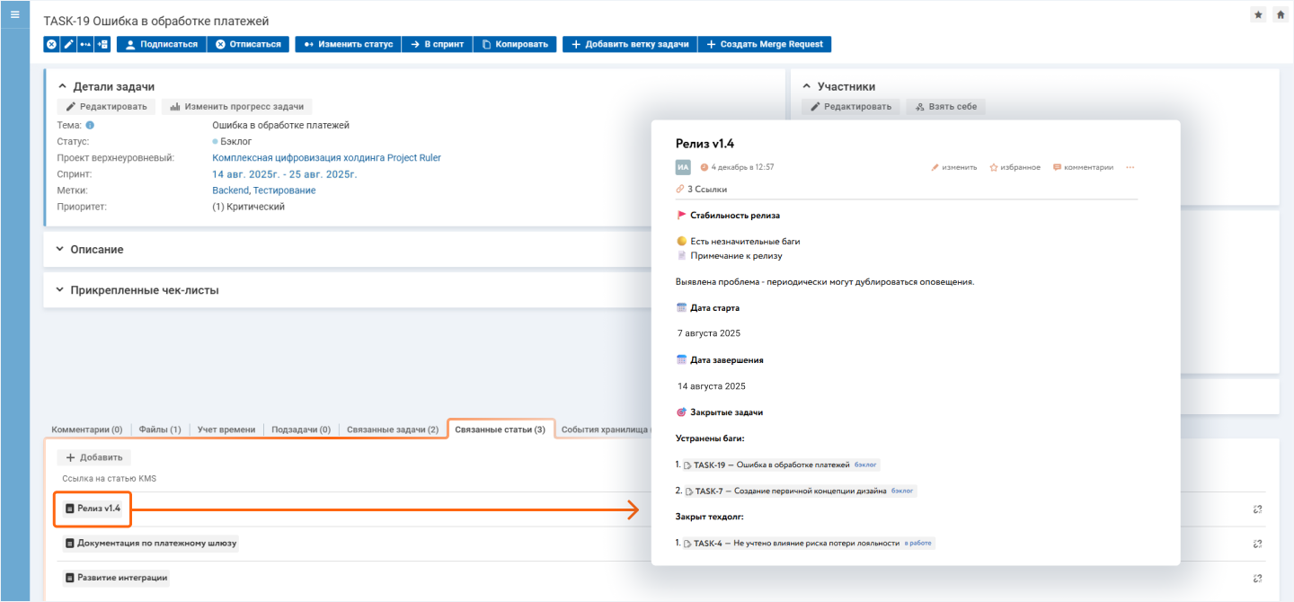 Связь статьи базы знаний с задачей проекта ускоряет доступ к лучшим практикам и решениям