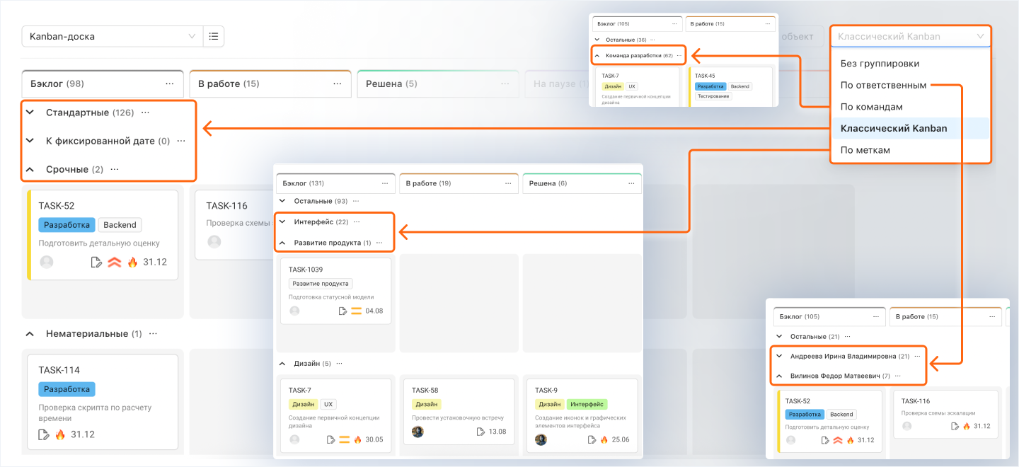 Вариативность группировки задач помогает настраивать удобную рабочую среду