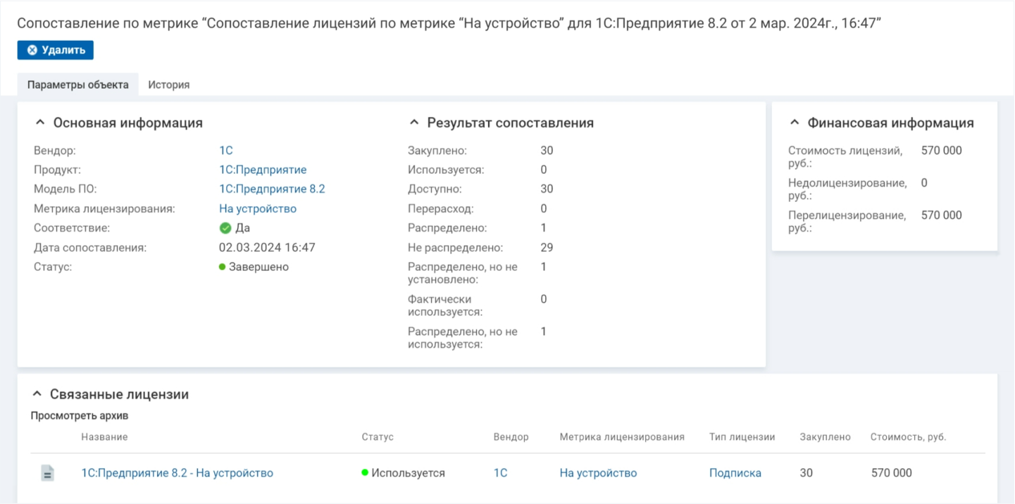 - отслеживание лицензионного баланса — разницы между количеством закупленных и фактически используемых лицензий;