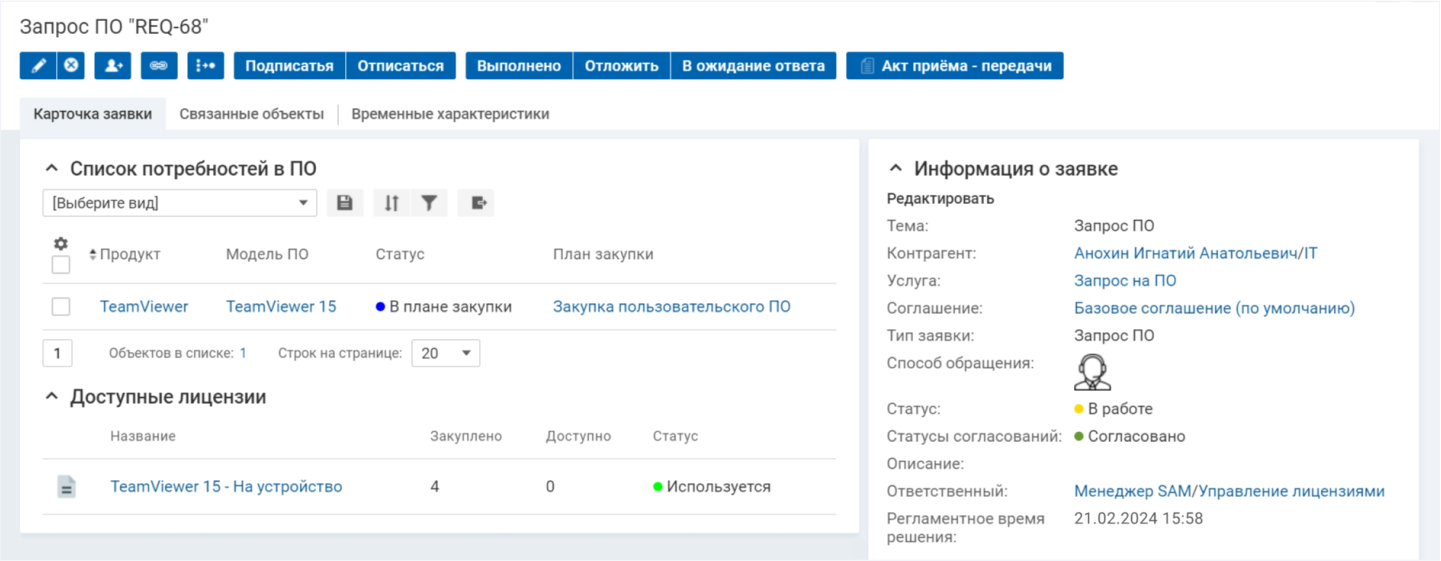 В SAM-решении всегда доступна актуальная информация о свободных лицензиях
