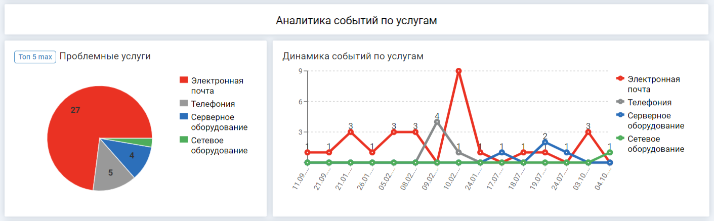 - Аналитика событий по услугам — какие услуги чаще всего страдают,