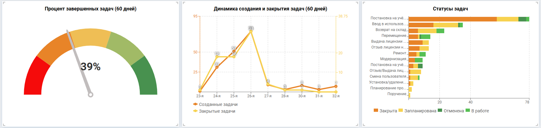 Руководители быстро узнают, как продвигаются задачи по ИТ-активам благодаря дашбордам