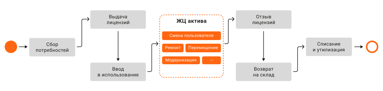 Так выглядит последовательность работы с аппаратным активом в ИТ-системе