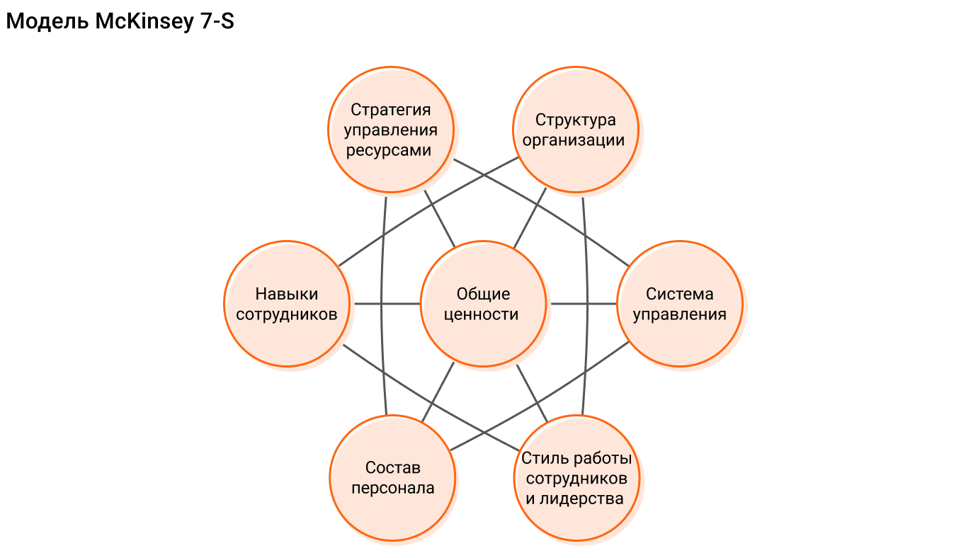 Ведь не зря в ITIL 4 появляется новая практика «Workforce and talent management», которая описывает эту область управления трудовыми ресурсами, что традиционно относят к части HR. Согласно этой практике и модели McKinsey 7-S, на которую она ссылается, важно учитывать следующие элементы.
