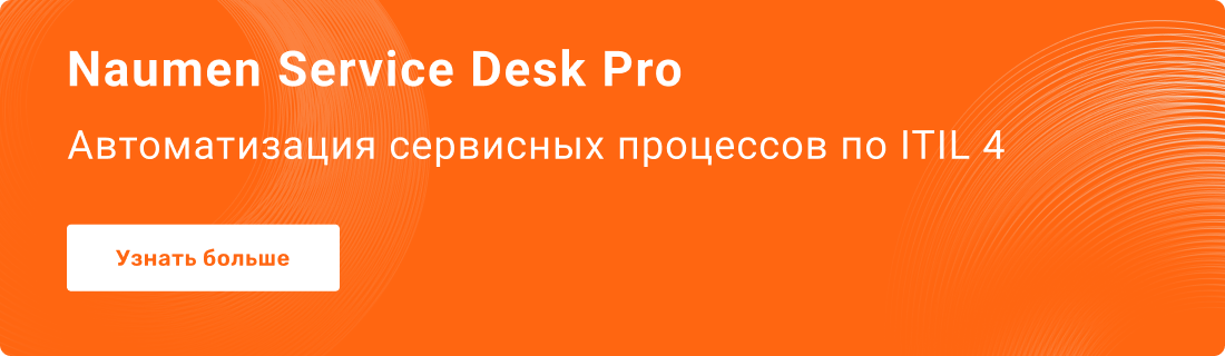 Хотите узнать, как настроить сервисные процессы по ITIL 4? Напишите на sales@naumen.ru, и мы проведем демонстрацию решения Naumen Service Desk Pro.
