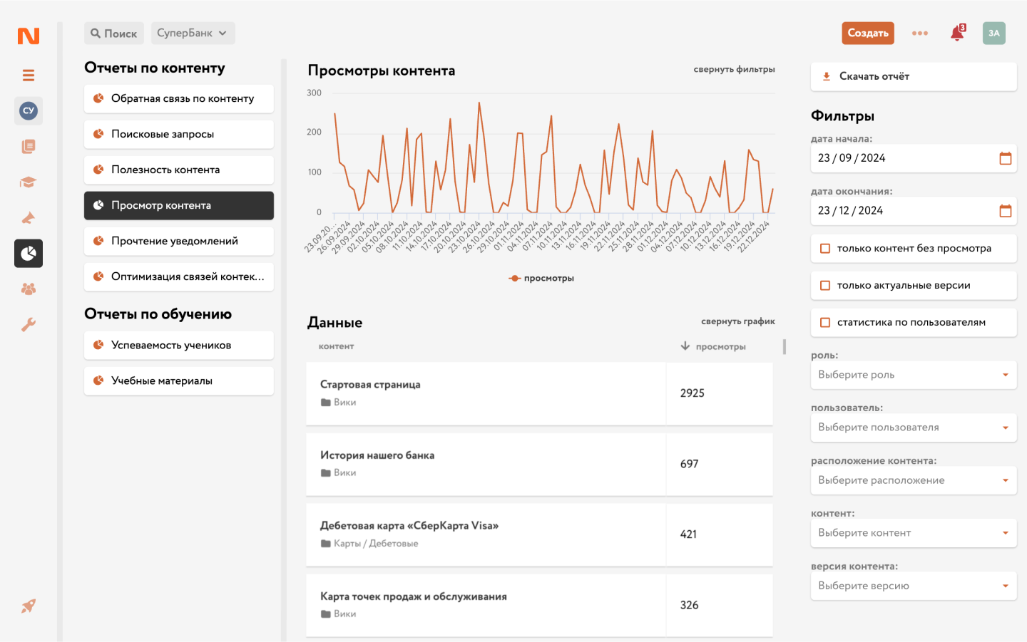 Кроме того, система предоставляет статистику по самым просматриваемым статьям. Это помогает