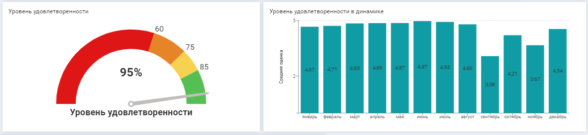 Для измерения уровня удовлетворенности количество клиентов с положительной оценкой делится на общее количество клиентов, оставивших оценку. Чтобы отслеживать динамику показателя, можно применять среднюю оценку по месяцам. Чем выше уровень удовлетворенности и средняя оценка, тем лучше. Единичная плохая оценка может показать, что клиент недоволен продуктом в целом, а не работой поддержки.