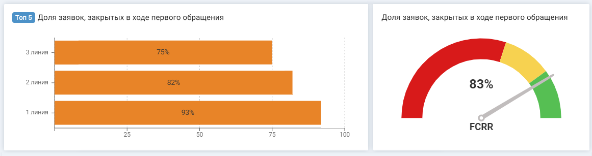 Доля заявок, закрытых в ходе первого обращения (FCRR, First Contact Resolution Rate) показывает, какой процент запросов решается с первого раза. Если показатель низкий — клиент остается недоволен результатом работ и переоткрывает заявку. Так может происходить, когда сотрудники формально относятся к выполнению задач и не стремятся разобраться в проблеме. Для улучшения этой метрики важно создавать клиентоцентричную культуру и доносить до специалистов поддержки ценность внимания к пользователям. Кроме того, потребуется пересмотреть процесс работы с обращениями, чтобы операторы не закрывали запрос, пока не удостоверятся, что клиент удовлетворен результатом.