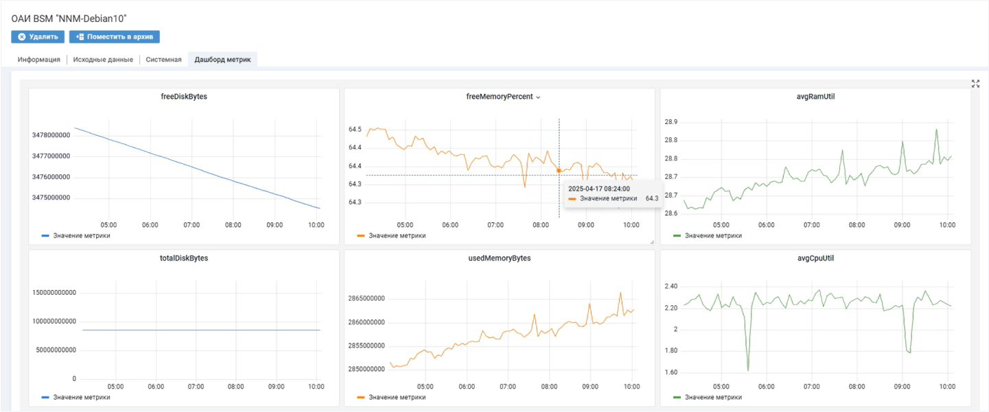 Пассивные метрики — это характеристики, которые зонтичная система агрегирует из внешних источников. Показатели могут поступать, например, из Zabbix, Naumen Network Manager, VMware vCenter.
