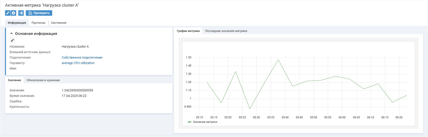 Анализ метрик. Здесь система отслеживает текущие значения метрик, вычисляет обобщенные значения и строит прогнозы. Такая аналитика позволяет контролировать состояние инфраструктуры, вовремя обнаруживать отклонения и не допускать возникновения инцидентов.