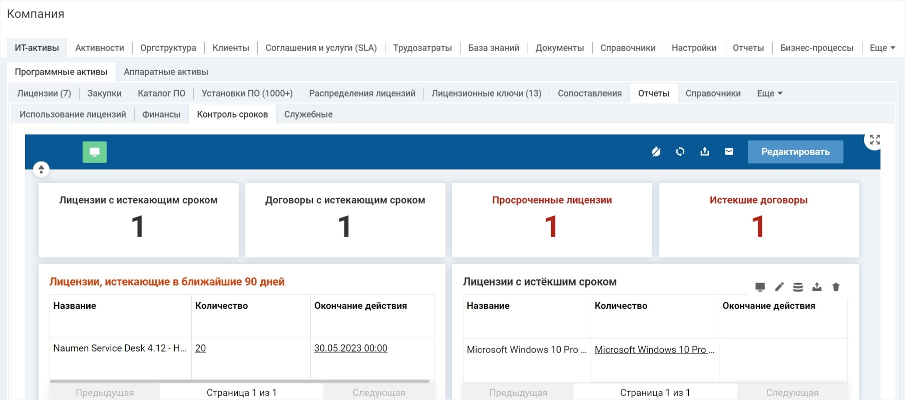 | Пропуск сроков оплаты лицензий и продления договоров | Автоматические напоминания о сроках действия лицензий и договоров |