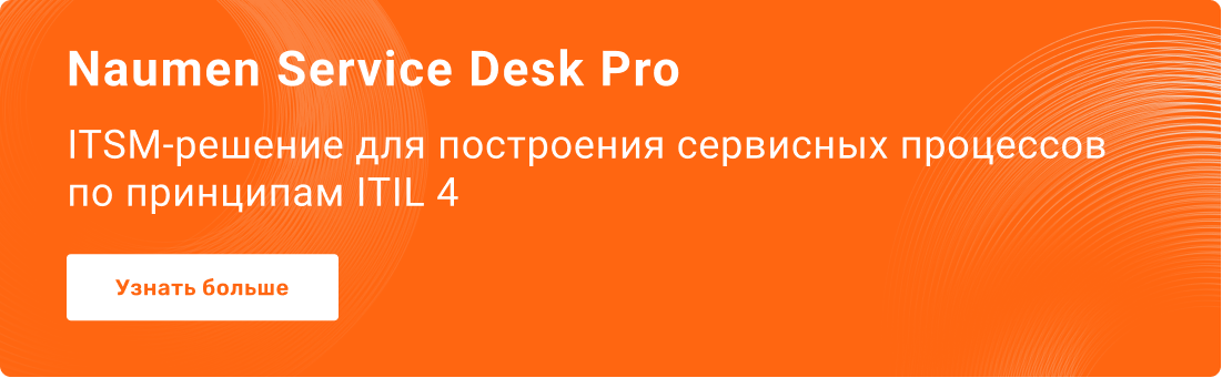 Покажем на примере Naumen Service Desk Pro, как реализуются ключевые этапы внедрения ITSM-решения. Напишите на sales@naumen.ru, и мы проведем демонстрацию.