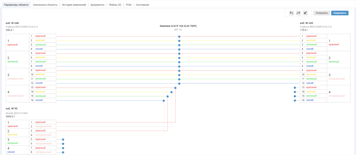 Графическое представление кабелей наполняется модулями и волокнами по справочнику марок кабеля