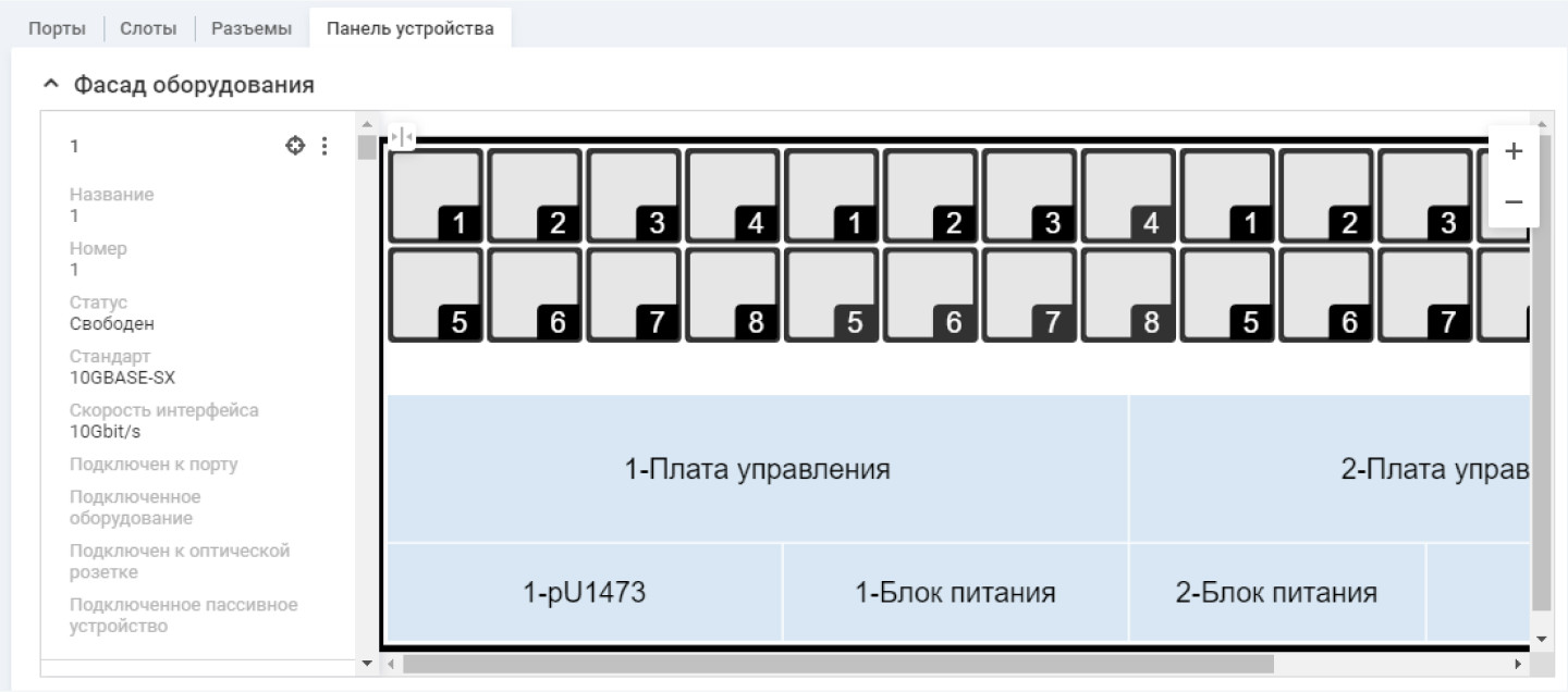 Число и типы разъемов система формирует по шаблону для конкретной модели оборудования, но эти настройки также можно обновлять